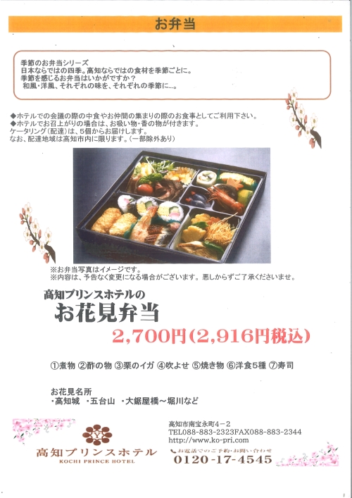高知プリンスホテルのお料理をご自宅やオフィスにお届け。